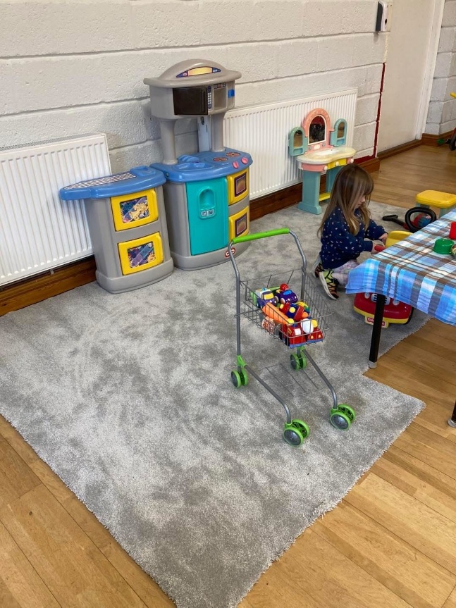 Our sessions are every Monday, except bank holidays and the month of August, 9.30 til 11am. We provide a mixture of activities for the pre-schoolers from large vehicles to small World play, farms and the kitchen to jigsaws and story area. We always put out the very popular big slide and large cars and scooters. We have a dedicated baby space with age appropriate toys. Rachel prepares craft activities each week which develop the children’s fine motor skills through sticking, drawing and painting. We try to use the seasons of the year to guide activities or favourite stories, dinosaurs and growing and changing themes. End of term parties playing games, singing songs, party food sharing & gifting.